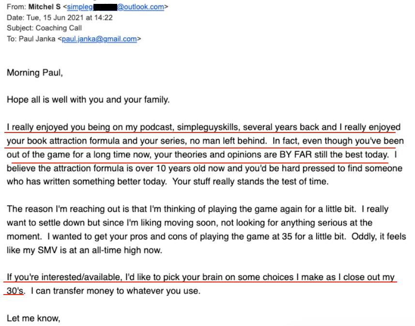 Schedule a call using the calendar below and Paul or another member of the Playboy to Papa team will meet with you to deliver your free coaching session. We'll chat about where your dating life is right now, where you'd like it to be, and give you a fast and easy to implement plan to help you achieve your goals.