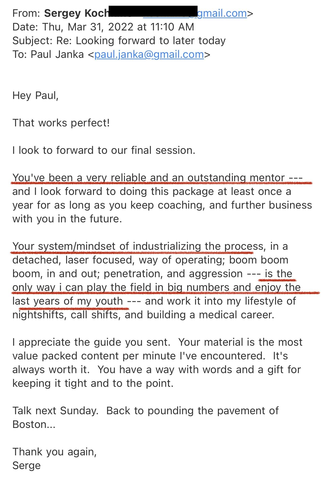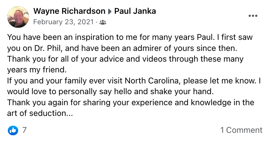 This is a free 15 minute call with Paul Janka or a member of his team to give you the custom plan necessary for you to achieve the sex & love life you've always wanted.